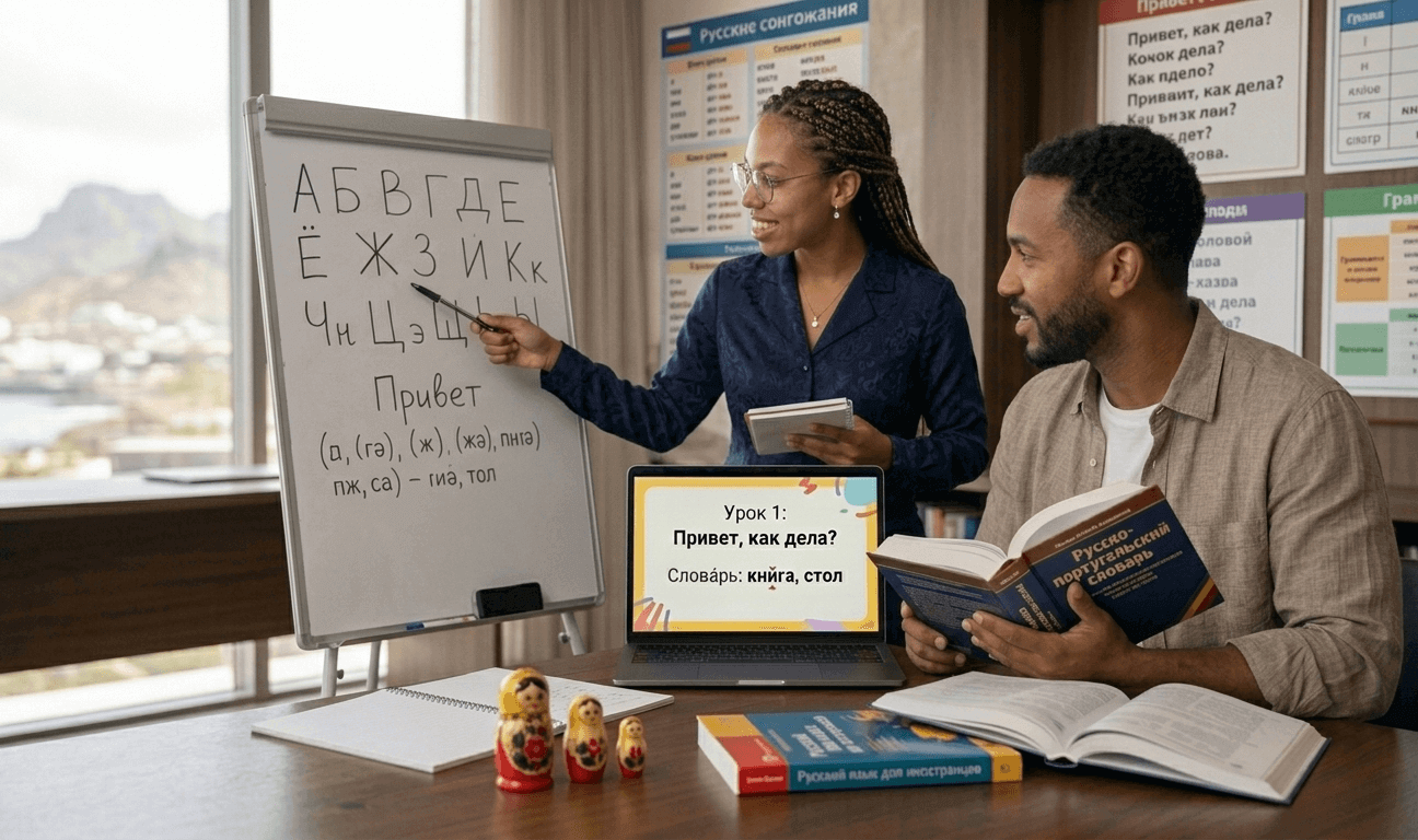 Domínio do alfabeto e fonética russa para conversação essencial para o dia-a-dia.